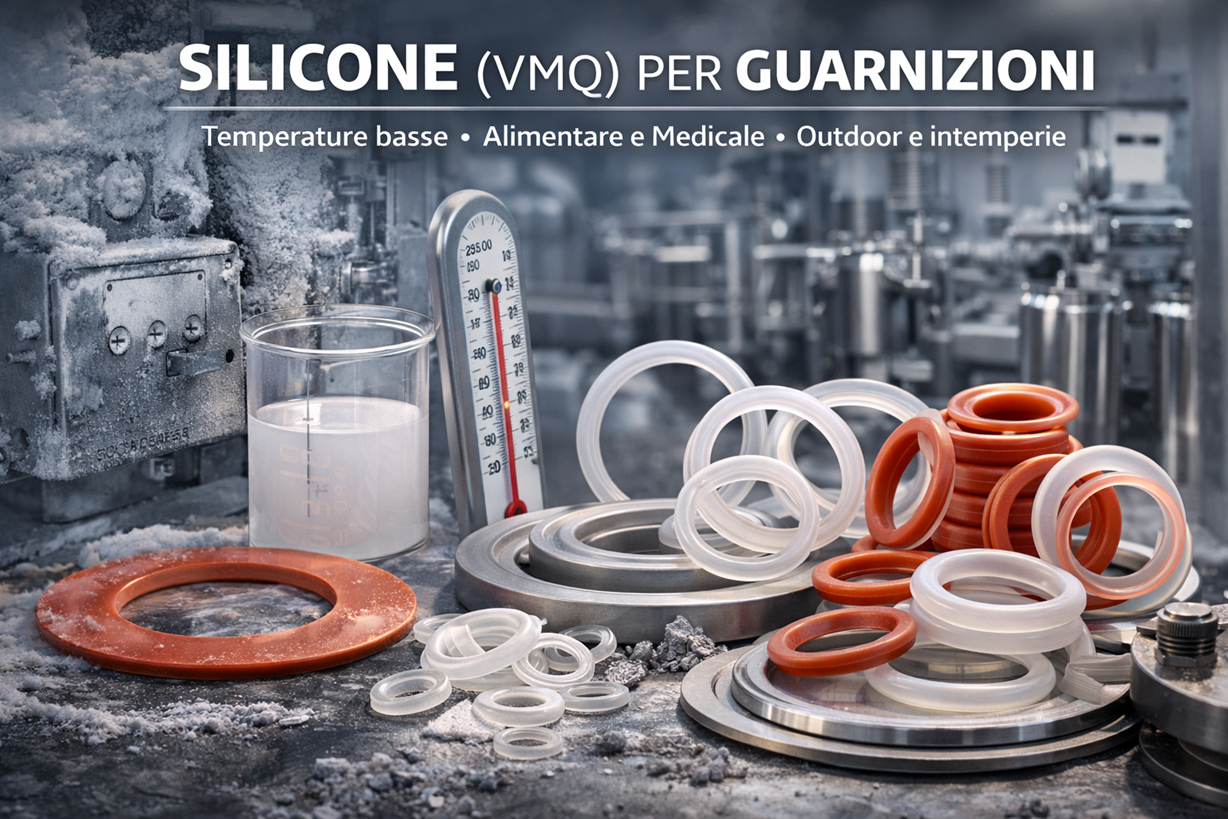 se il requisito è “freddo + outdoor”, il silicone VMQ è spesso una soluzione semplice e molto efficace, purché la compressione e il montaggio siano corretti.